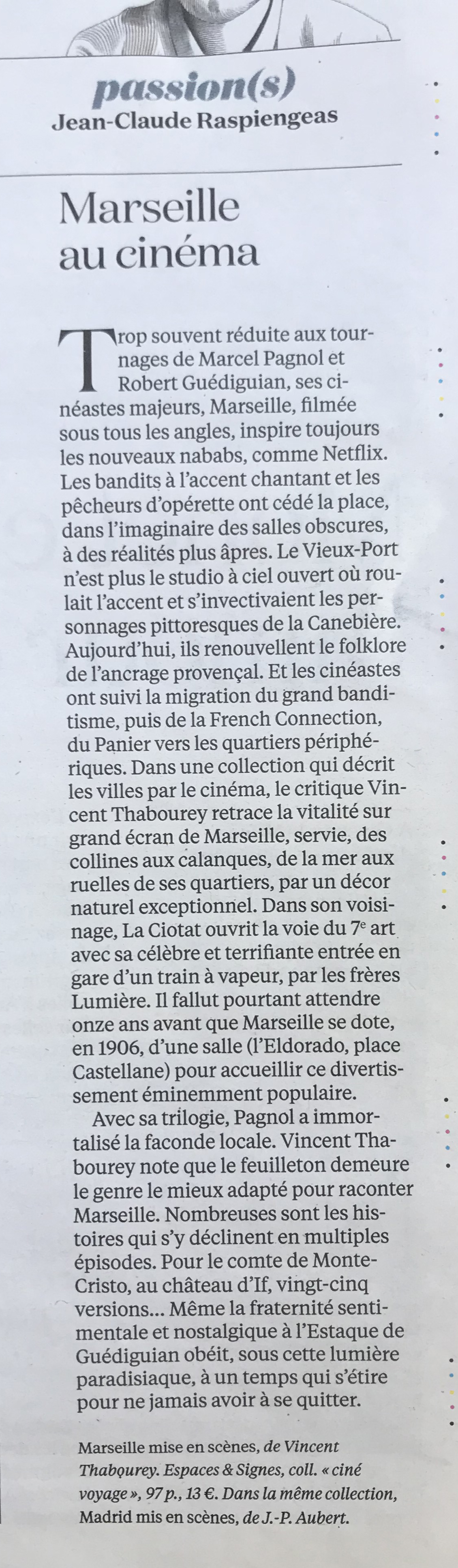 Ville solaire et méditerranéenne, Marseille est la capitale régionale la plus filmée de France. Marcel Pagnol, Jean Renoir, Jacques Demy, Jean-Pierre Melville, William Friedkin et, bien sûr, Robert Guédiguian y ont posé leur caméra pour nous en révéler une image à chaque fois différente.En parcourant les lieux de tournage de scènes cultes ou emblématiques, Vincent Thabourey nous fait redécouvrir plus de soixante-dix films dans ce ciné-guide de Marseille enrichi de nombreuses cartes et de plusieurs index (films, réalisateurs, lieux).Cette réédition est enrichie de sept nouveaux films (dont La Villa de Robert Guédiguian, Shéhérazade, primé à Cannes, et Taxi 5 ).